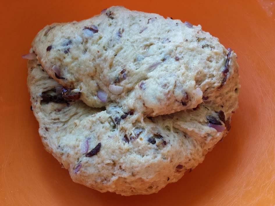 - Tip the dough out onto the work surface, and knead it until it is smooth. I know, it’s rather lumpy with all those tasty ingredients in it, but just knead it until you think it looks right.