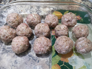 Here we see some interesting sausage-meat stuffing balls. They are made of sausage-meat, onion, garlic, fresh thyme and Greek oregano. The rest of the space in the dish was filled with balls of Paxo sage and onion stuffing, but that’s not as interesting.