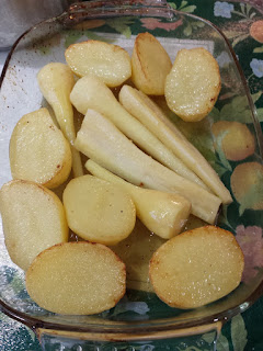 Roast potatoes had been cooking in the tasty duck fat for 15 minutes before I added the parsnips. At the time, I thought this wouldn’t be enough parsnips. This is a common error with Christmas dinner.