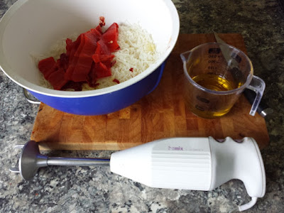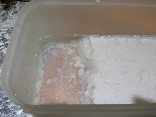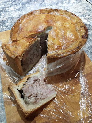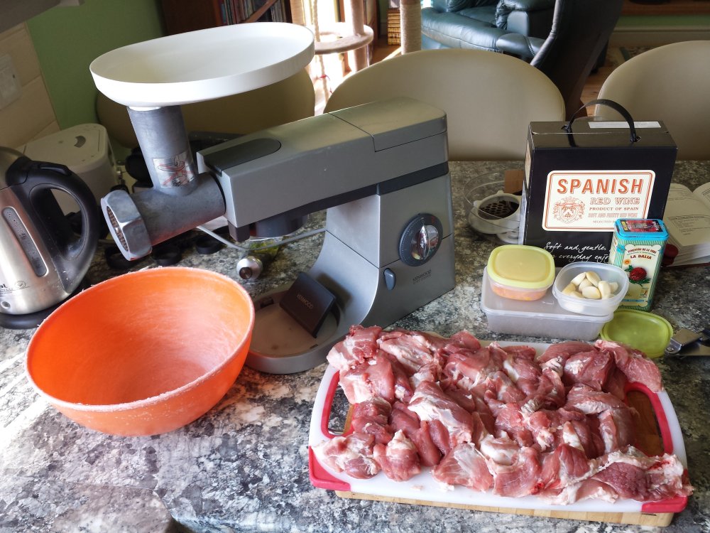 Although this is from the recipe for a Gala Pie, I’m just using the meat, and not adding the boiled eggs. What we see here is chopped pork, with the addition of some shop bought, unsmoked bacon, for its preservatives. Harder to see are the salt and the spices. I’ve resisted the inclination to reduce the amount of salt, as it also has a preservative effect. Tastes good, too.
