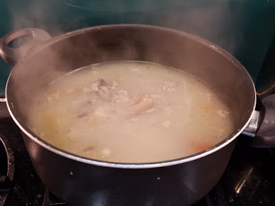 This blob is the strange pastry that the pie will be made in. It’s hot water crust, and contains a disturbing amount of lard. I studied a couple of recipes, before making it. The one in Leith’s “How to Cook” uses butter and lard, but it’s a recipe for a proper raised pie. I made mine in a tin, as the extra challenge of building a self-supporting pie case seemed a little risky for a first attempt. I was following in the doughty footsteps of Tim Hayward, whose “Food DIY” has inspired so much of what I have been writing here.