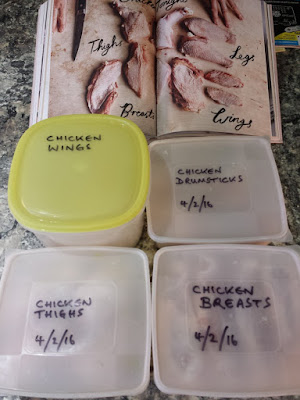 All cling-filmed to keep them separate, apart from the wings, which I am saving up until I have a big box of them packed and ready to cook. And off to the freezer they go!