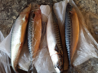 I bought these four nice mackerel from Mr Tesco for the princely sum of £6.16 for 1.76Kg.