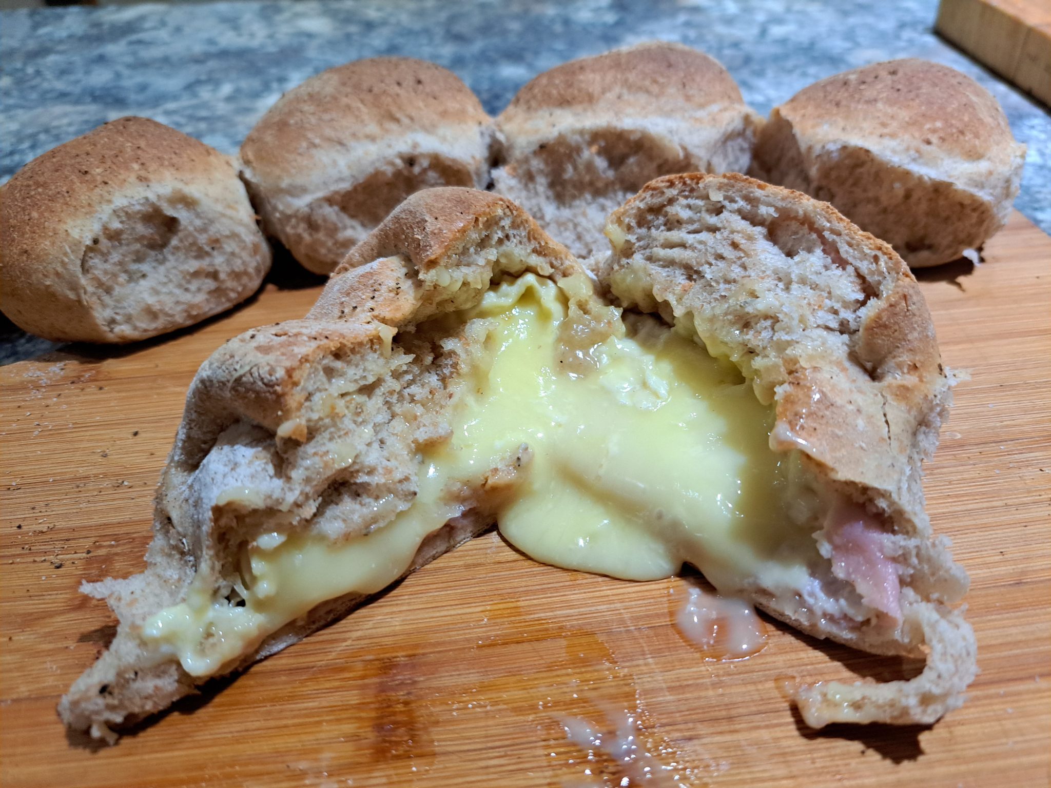I was particularly pleased that the cheap deli ham had prevented the cheese from giving the loaf a soggy bottom. There was more that enough for two people, meaning those rolls will come in handy for lunch!