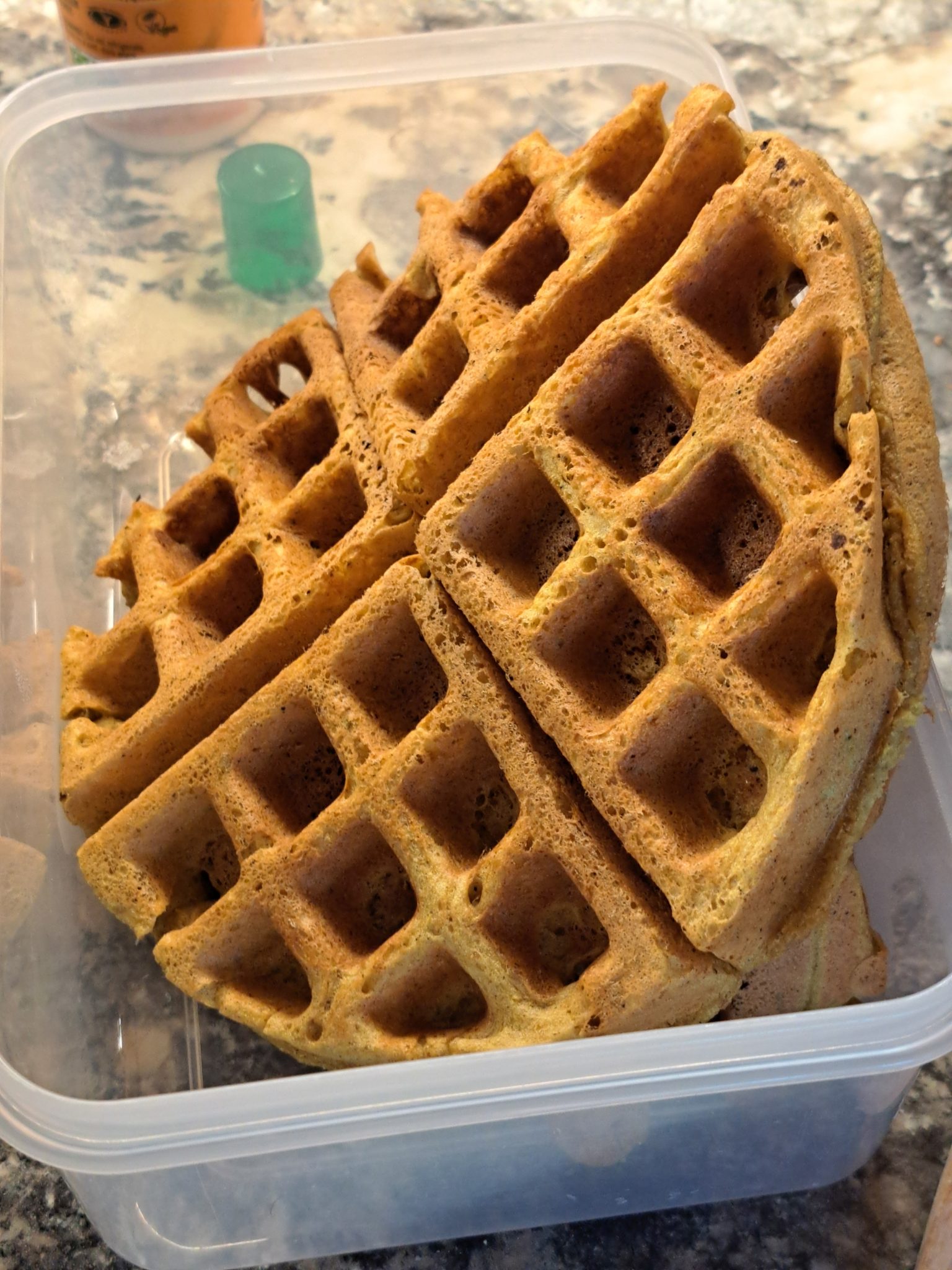 Because, why not? Basically, I wondered if a seitan mix would work in a waffle maker, and I decided a savoury flavour would be interesting.